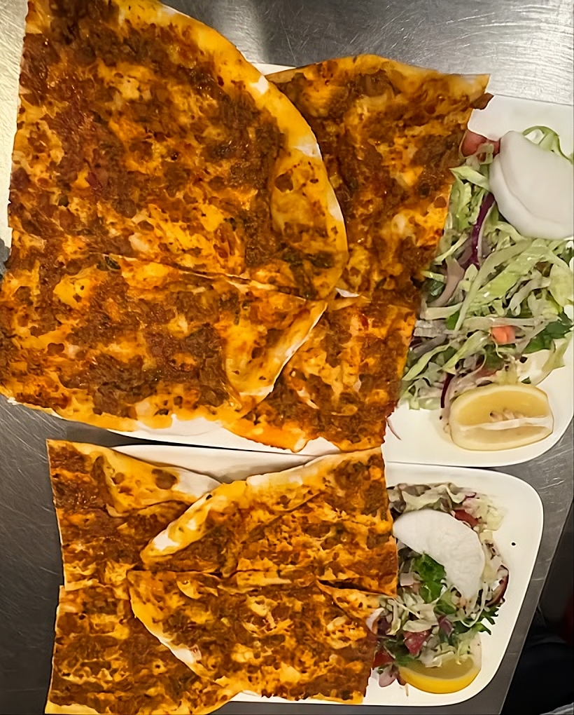 Frisch gebackene türkische Pizzen und Teigschiffchen, wahlweise mit Käse, Spinat, Hähnchen- oder Lammfleisch gefüllt.