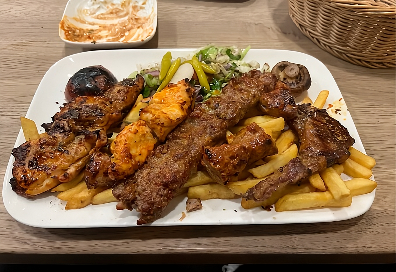 Für den großen Hunger: Entdecken Sie unsere gemischten Grillteller, saftige Lammrippen oder würzige Pfannengerichte mit Reis und Gemüse.